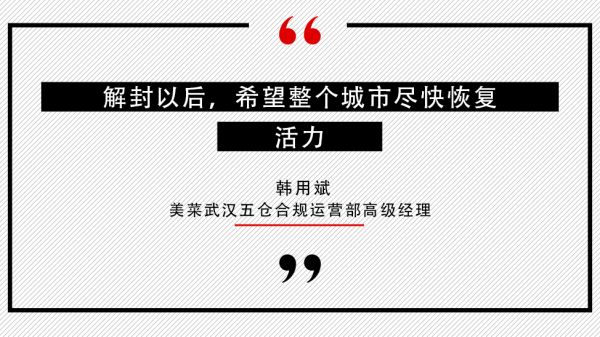 虽然疫情期间我也跟着司机去社区配送过,但解封以后,我还是想到武汉车水马龙的街道上去感受一下。希望整个城市尽快恢复活力,能给普通老百姓一个良好的生活、工作环境。