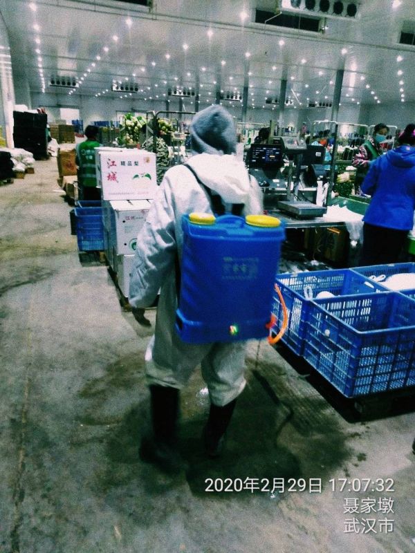 美菜是一个餐饮供应链公司,给餐厅提供食材配送上门服务,在武汉五仓,我们部门平常主要负责仓库食品安全、人员安全、合规调查方面的工作,也承担着应急管理的任务。所以疫情爆发以后,我们的工作重点就变成了仓库防疫工作,跟着公司发布的防疫控制流程,每天进行消毒、给仓库工作人员和司机测量体温、发放防护服等等。