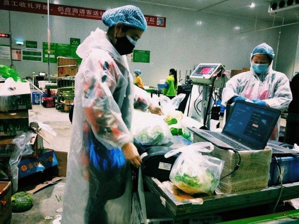 但当时很多员工都已经回家过年了。尤其一月底的时候,仓库人手很不够用,大概只有20~30名员工,都是之前为了“春节不打烊”活动留下来的。那时候防护物资也不够,防护服不够用的时候只能用一次性雨衣来替代。2月初的时候,公司从别的城市调了很多防护物资过来,资源才变得充足起来。