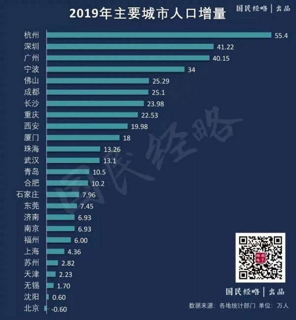 2019年,武汉的常住人口增量为13.1万,处于中等水平,图源国民经略