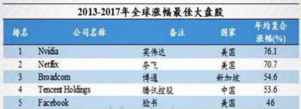 由于技术的独占性,人人都想用英伟达的GPU,直接也让其出货量涨到了惊人的程度,连带成为了2013-2017年全世界表现最好的大盘股,连谷歌脸书都要避其锋芒!