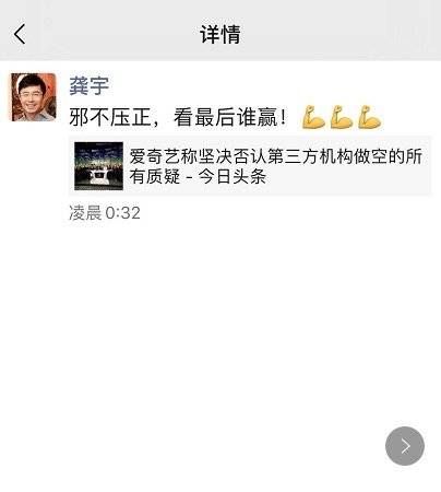 针对做空爱奇艺的报告,爱奇艺创始人、CEO龚宇在朋友圈发声,并转发了爱奇艺否认造假的声明,并配文:邪不压正,看最后谁赢。