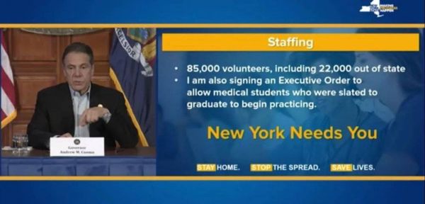 而根据州长科莫的介绍,纽约州的呼吸机保有量为7000台。如果其中4成用于新冠肺炎的救治,那么目前纽约州的呼吸机已经告急。好在昨天,纽约州收到了中国的1000台呼吸机捐赠。