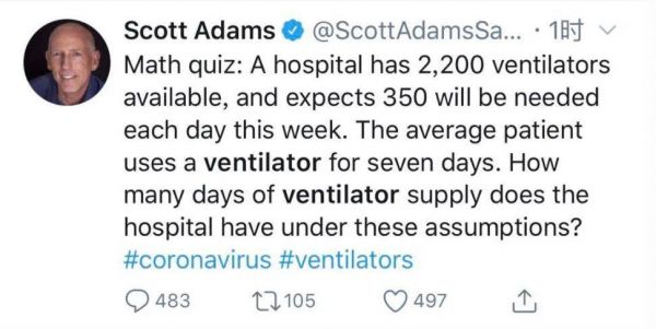 准确计算呼吸机的缺口数量是个复杂的数学问题(图源:twitter)