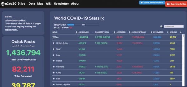 约翰霍普金斯大学的网站实际上是在1月21日研发,1月22日上线的。不过,有一个网站比它更早开始追踪全球新冠疫情,它也是现在世界上最大的新冠追踪网站之一。而它的开发者,是一个17岁的高中生。
