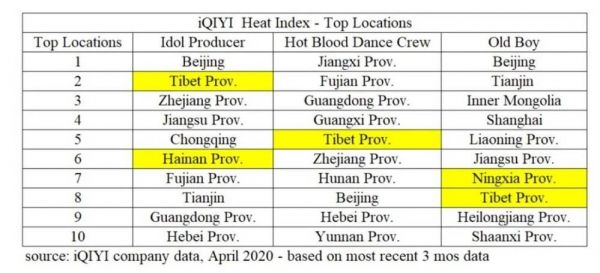 Wolfpack Research指出,通过三个独立来源的数据,发现爱奇艺DAU的夸大幅度在42%至60%之间。这三个信源都很有意思,一是两家中国广告公司,它们向Wolfpack提供了爱奇艺的后台数据,不过这是一家公司的核心机密,前述私募业内人士称,第三方公司不可能拿到全部DAU数据,取样方法不公开,无法证明其有效性和合理性。二是爱奇艺热度指数,《老男孩》、《偶像练习生》和《热血街舞团》等爱奇艺热播节目的近期数据显示,西藏、海南、宁夏、内蒙古的热度排名在前10位,而西藏人口很少且有自己独特的地方语言和文化。
