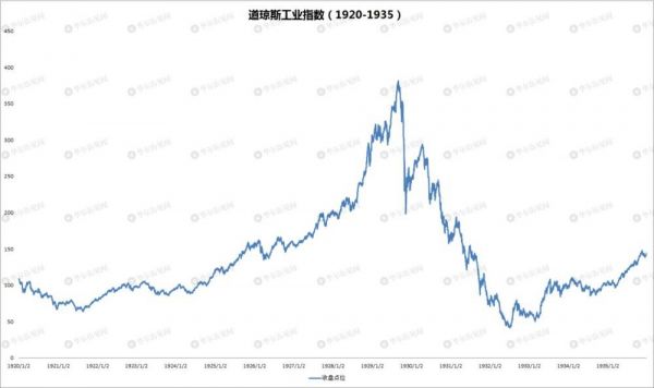 1929年9月3日,道指升至最高点381.17点,此后就开启连绵不断的下跌趋势。10月24日,史称“黑色星期四”,股市突然从阴跌转向暴跌,10月28日,又一个“黑色星期一”,道指暴跌近13%,紧随而来的是“黑色星期二”,股市进一步下挫12%。