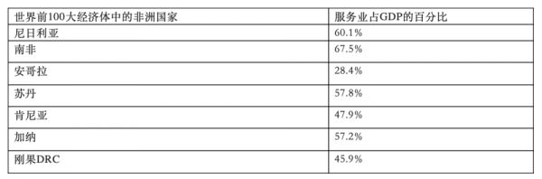 (2017年撒南非洲主要经济体服务业占GDP比重/来源CIA world fact)