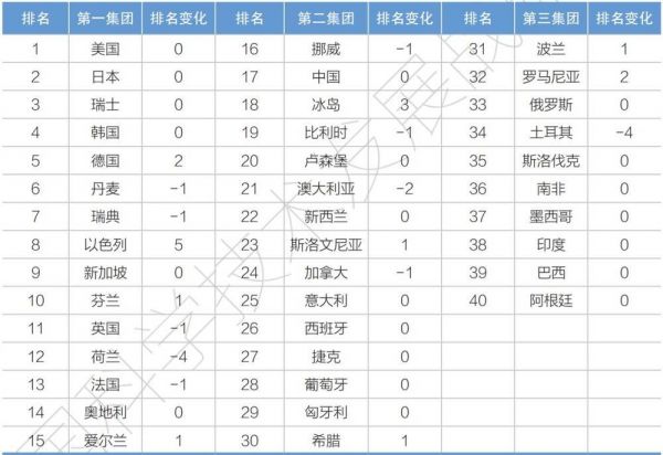 国家创新指数排名按三个集团分布
