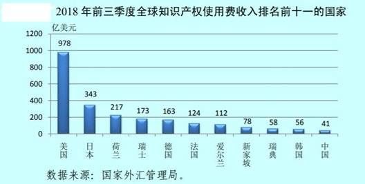 2018年,我国知识产权使用费对外支出358亿美元,收入56亿美元,逆差302亿美元。由此看,中国仍然是知识产权收益赤字国,尤其是与美国还存有相当的差距。
