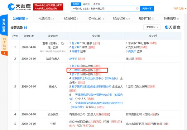 网易科技讯 4月10日消息 天眼查数据显示,4月7日,商机去哪儿APP的运营主体一号商机(北京)科技有限公司发生工商变更,王思聪从该公司股东中退出。同时退出股东的还包括创新工场、真格基金。