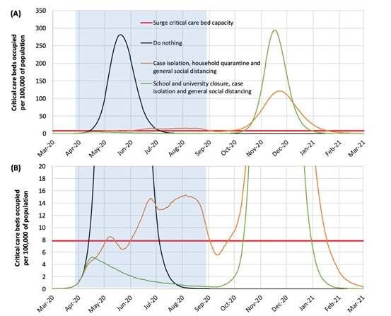 这个模型重点介绍了英国的重症监护策略方案,其中显示了重症监护病房(ICU)的床位需求。