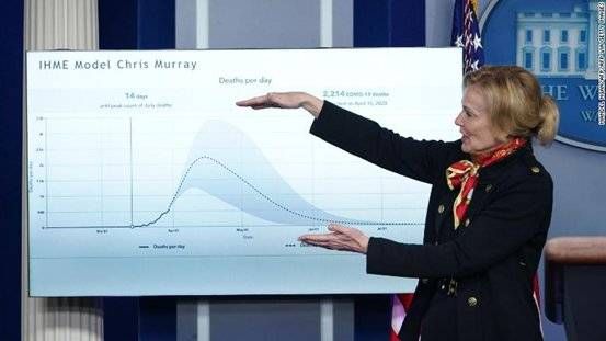 白宫的疫情发布会上,华盛顿大学的这张疫情预测表,都是特朗普与他的助手们,讲解的重要线索与依据。