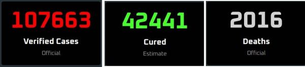 红色是累计确诊人数(包括已经痊愈的),绿色是痊愈,灰色是死亡人数。
