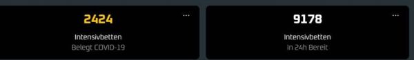 这是4月8号德国权威网站公布的实时重症病床数据。目前德国有6万多感染新冠尚未痊愈的病人,一共占用了2424张重症病床,还剩余9178张重症病床,用来迎接未来会出现的新的重症病人。