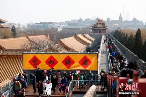 资料图:2月5日农历正月初一,北京故宫博物院人头攒动,大批游客进宫过大年。中新社记者 富田 摄