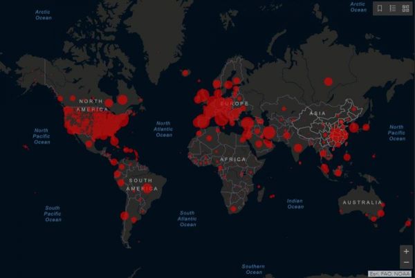 全球疫情形势不容乐观。/美国约翰·霍普金斯大学