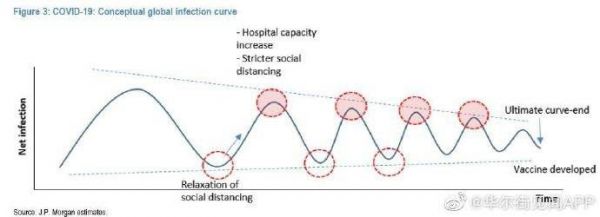 摩根大通甚至提出了“多轮震荡爆发”模型,认为在感染数据峰值达到拐点后,新冠疫情未来可能面临多轮爆发的局面;后几轮的传播威力将逐渐减小,完全解决病毒还需要等待疫苗。