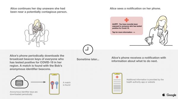 简单来说,就是如果你带着手机与冠状病毒检测呈阳性的人有过接触,那么就会被警告。