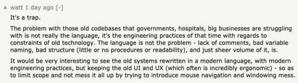 但一位网友指出,各州失业保险系统崩溃的修复关键,倒不在于会不会 COBOL 语言,而是工程实践问题。