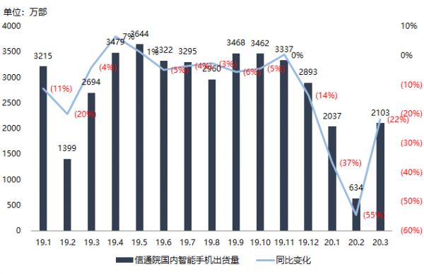 最前线 | 信通院:3月国内智能手机出货量环比增长超2倍,5G手机占比回落