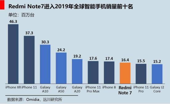 一边是廉价的Note7,全年卖了1640万台,是唯一挤进全球单机型销量前十的国产型号。