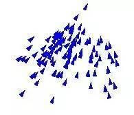 这三条简单的规则就是 Boid 灵活飞行的秘密。我们可以把这三条规则编进计算机程序中,这样遵循这些规则屏幕上的动点就会体现出活灵活现的类似真实鸟群的飞行行为。下面是运行 Boid 的一个例子:
