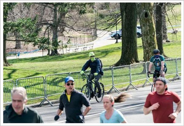 ▲4月4日,纽约市民在中央公园跑步骑行
