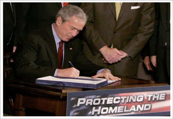 ▲小布什签署“爱国法”