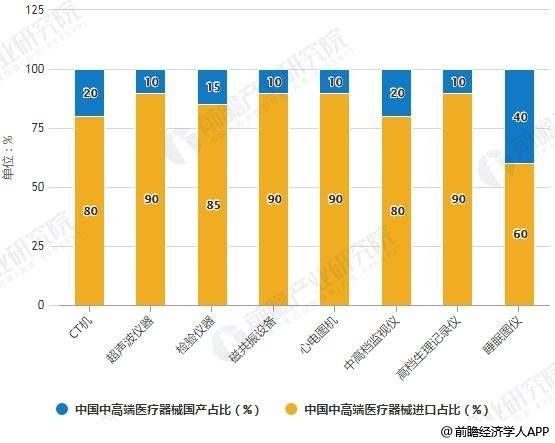 据前瞻占产业研究院统计,在整体超过5000亿规模的我国医疗器械市场中,高端产品只占25%。而这25%中,又有70%被进口设备牢牢占据。在以下这几个领域中,进口依赖尤其严重: