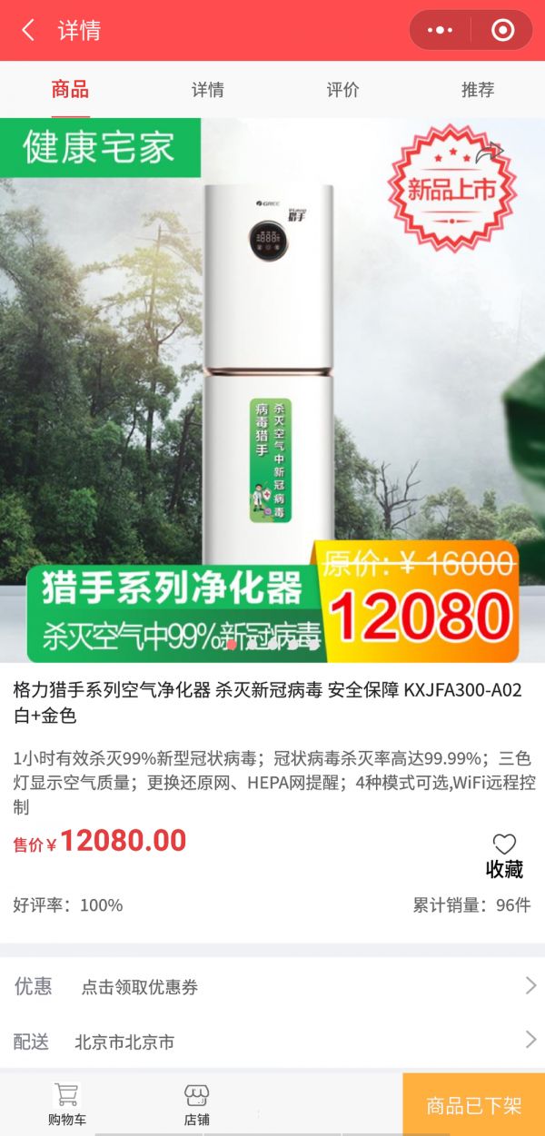 3月18日,格力再推新品“新冠空气净化器”,宣称这台售价1.2万的机器可以在1小时内杀灭99%新冠病毒。从“董明珠的店”数据来看,该净化器共计售出96件(现在已经下架)。