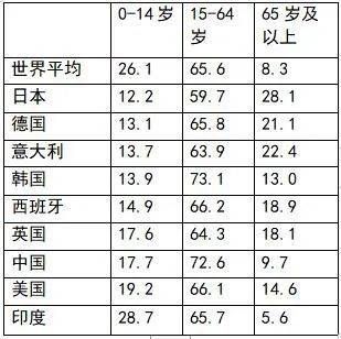 表1、日本主要年龄段人口占比(%)