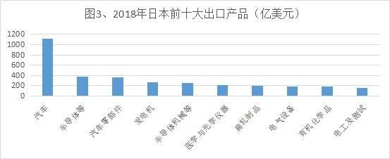2018年美国对日贸易逆差接近700亿美元,美国从日本进口了价值1430亿美元的货物,主要包括汽车、机械和电器等。在日本2018年主要产品出口结构中,汽车及零部件仍是主要出口产业支柱。特别是在对美出口方面,2018年日本对美贸易顺差的80%左右都来自汽车及零部件,这还没有包括日本在墨西哥所设汽车工厂的输美生产,以及在美工厂的产量。