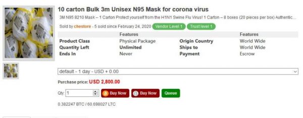 首先,有人开辟了新业务——在暗网卖起了口罩。