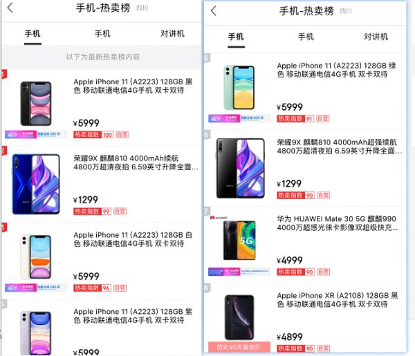 对比京东、淘宝、苏宁等线上渠道的iPhone11售价与苹果官网售价后发现,线上渠道商已经对iPhone 11采取了不同程度的降价措施,最多降价幅度达到20%。
