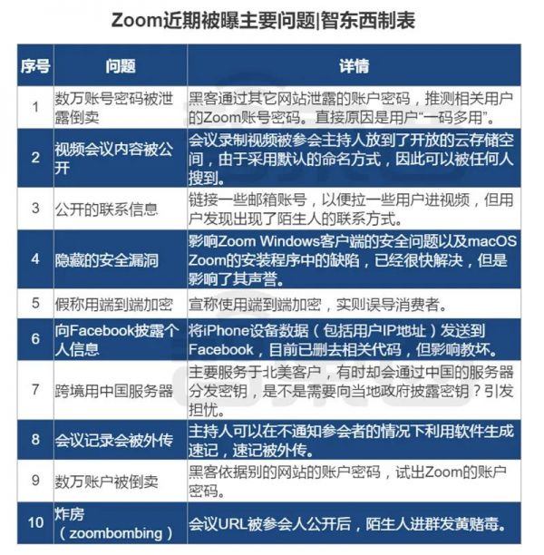 Zoom的安全问题究竟是“人红是非多”还是里子出了问题?这些问题是Zoom的特殊问题还是行业的普遍担忧?我们将Zoo近期爆出的问题梳理如下: