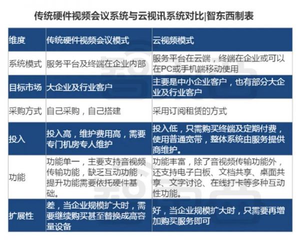 自2010年起,各大厂商纷纷开始提供云视讯服务。客户不需要购买昂贵的服务器和专人运维,只需要租赁软件服务,通过摄像头、电脑等终端就能接通视频会议。
