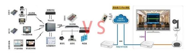 ▲传统硬件视讯系统(左)与云视讯系统(右)架构的对比