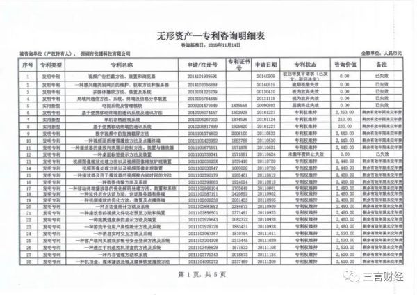以及深圳市快播科技有限公司名下的专利一批,其中有54项专利处于剩余有效年限未交年费状态,剩余专利状态已失效。评估价和起拍价为133490元。