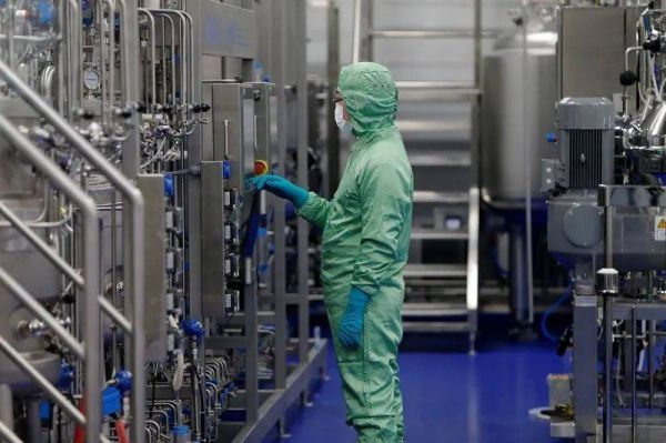 一名技术人员在中国疫苗生产企业康希诺生物位于天津的工厂工作,公司已经开始在志愿者中测试其新冠疫苗。来源:路透社