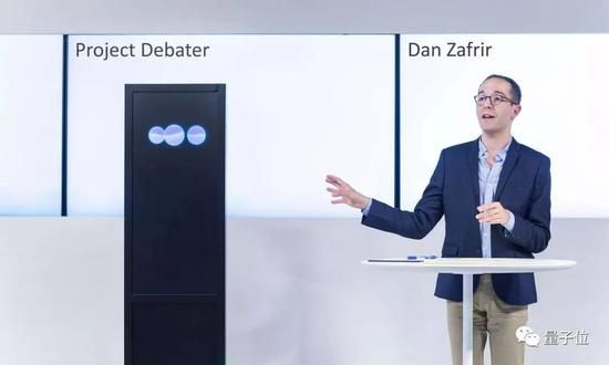 人机大战的一方是IBM的的AI,Project Debater,那块黑色面板就是它在人间的载体。去年6月,它击败了2016以色列全国辩论冠军Noa Ovadia,创下了AI在辩论方面击败人类的历史记录。