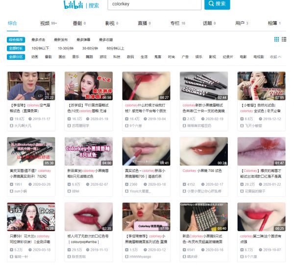 针对产品特色,快美为colorkey在B站up主中挑选出了能做丰富色彩的彩妆类、生活类、可以做中低价种草的up主。