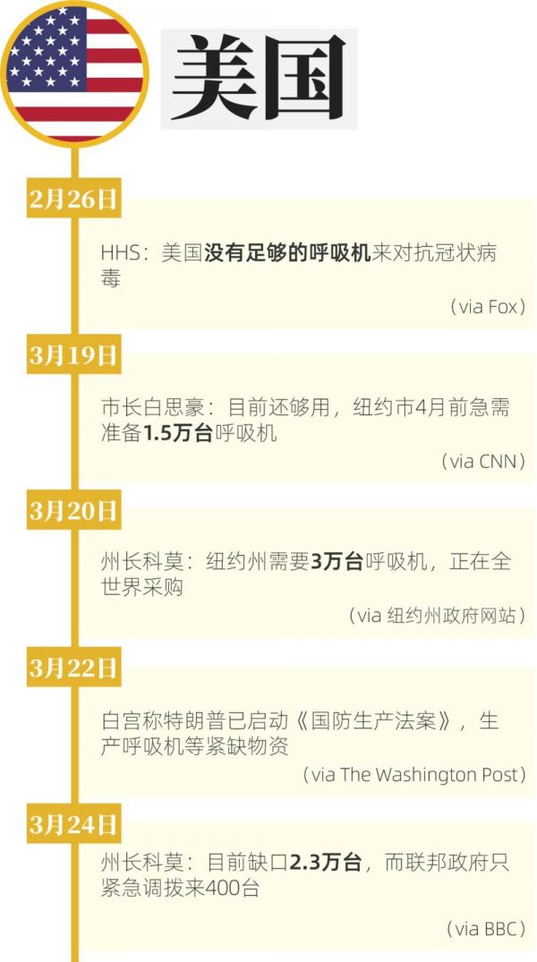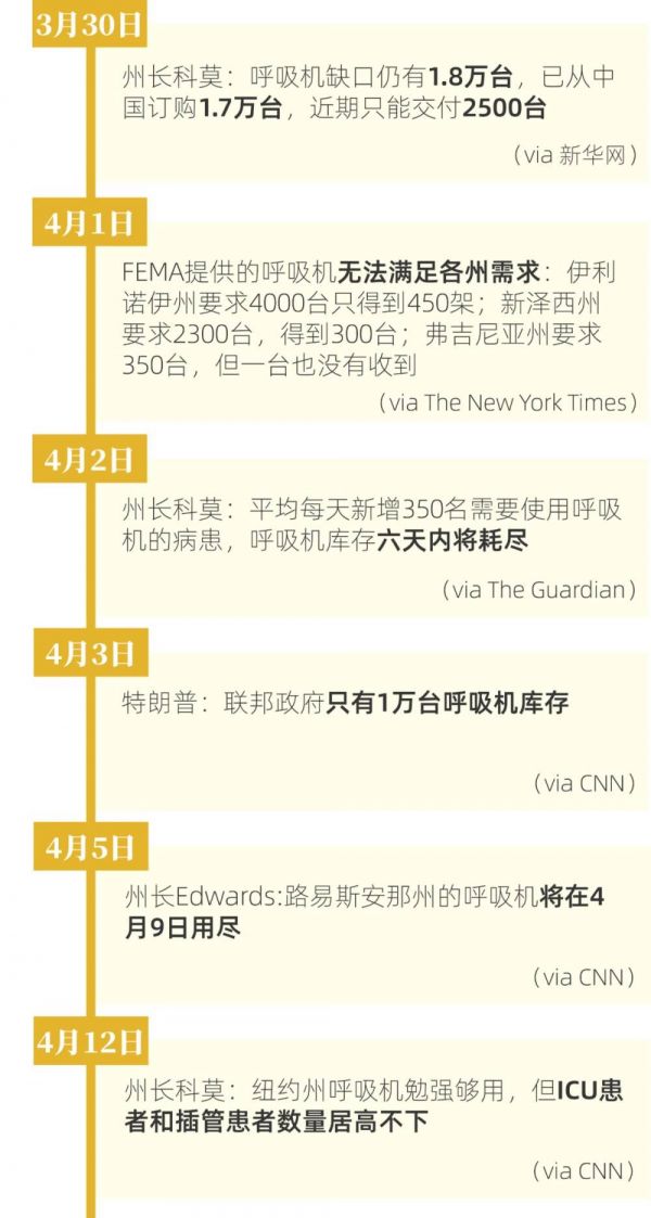 美国呼吸机相关事件时间轴
