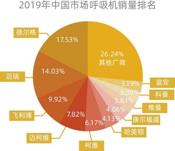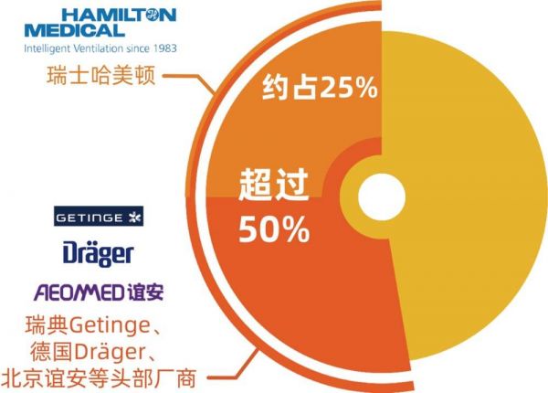有创呼吸机通常用来抢救危重症患者。在该领域,瑞士哈美顿是全球最大、占据四分之一市场份额的呼吸机企业,与德国德尔格、瑞典Getinge集团以及中国的北京谊安等头部企业瓜分了半数以上的有创呼吸机市场。