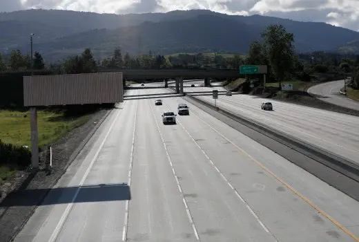 (硅谷地区过去车流如织的高速上如今变得空空荡荡)