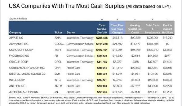 (科技巨头的现金储备最为充沛)