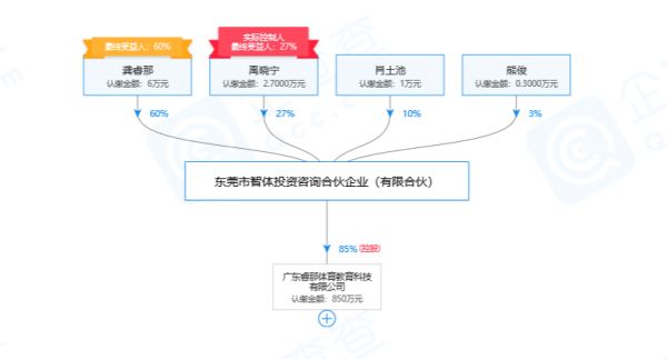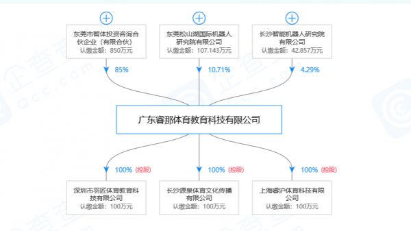 根据企查查信息,公司股东包括机构股东东莞松山湖国际机器人研究院有限公司、东莞市智体投资咨询合伙企业(有限合伙)、长沙智能机器人研究院有限公司,其中机构股东东莞市智体投资咨询合伙企业(有限合伙)为大股东。「睿那体育」大股东东莞市智体投资咨询合伙企业(有限合伙)大股东为广东睿那体育教育科技有限公司创始人龚睿那,据企查查信息,股东之一禹晓宁的关联企业中有一家违反税收规定而受到行政处罚,且其为有失信被执行人及被限制高消费。