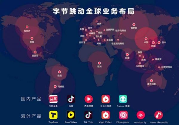 在国内成长为互联网流量巨头的字节跳动一直对国际化“情有独钟”。早在2015年,字节跳动就正式开始了全球化部署,招聘外籍员工,首次开启了全球化团队,此后张一鸣也在多种场合强调全球化。在第三届乌镇互联网大会,张一鸣表示,全球化会是 2017 年今日头条的核心战略之一。到 2018 年公司六周年之际,张一鸣又说,2018 年是今日头条全球化的关键年,公司的新愿景是成为全球创作与交流平台。