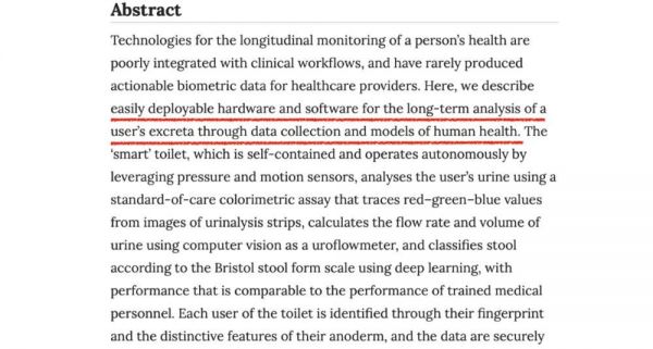 这个智能马桶的构想来自斯坦福,通过传感器监控便便和上厕所的过程,判断使用者的健康状况。