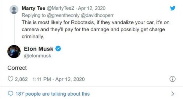 去年马斯克曾宣布,2020 年底之前会有 100 万辆特斯拉自动驾驶出租车上路,眼瞅着目前毫无进展并且疫情来袭许多公司的自动驾驶路测已经暂停,马斯克依然坚定地表示,100 万辆自动驾驶出租车计划仍在进行中。